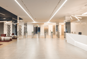 The Discovery Building “tops-out” and places the flag